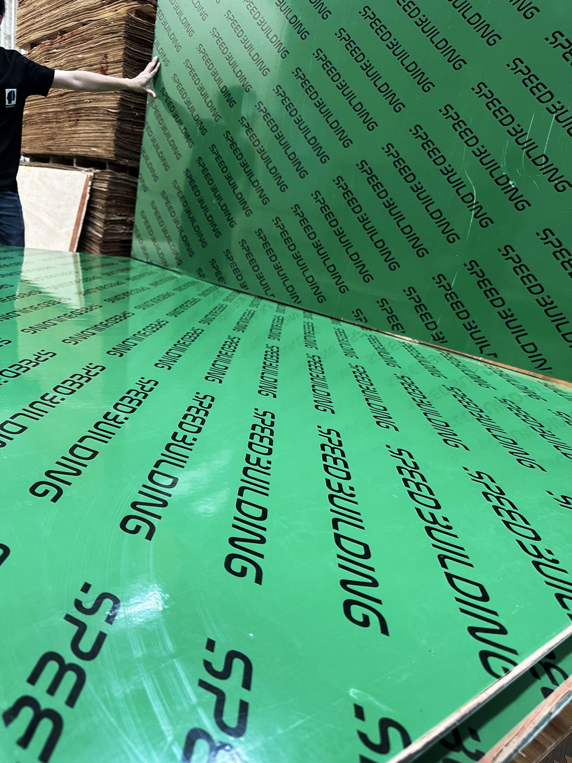 Durable Surface Coating:The green film layer provides a smooth, durable finish that resists water, scratches, and wear. This coating ensures the plywood maintains its appearance and function, even under frequent use in harsh conditions.