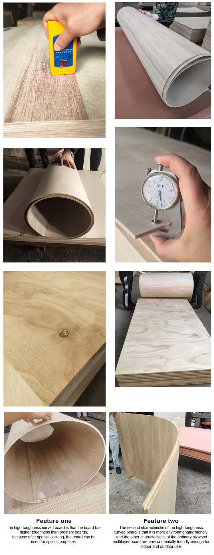 Bending plywood, also known as flexible plywood, is a highly versatile wood product designed to curve and bend without breaking. It is ideal for applications requiring smooth, rounded surfaces such as furniture design, interior architecture, and decorative structures.